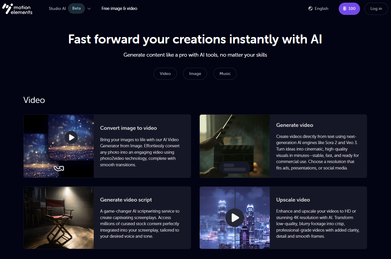 Send any stock video, image, or template directly to Studio AI for enhancement or customization — no downloading needed.